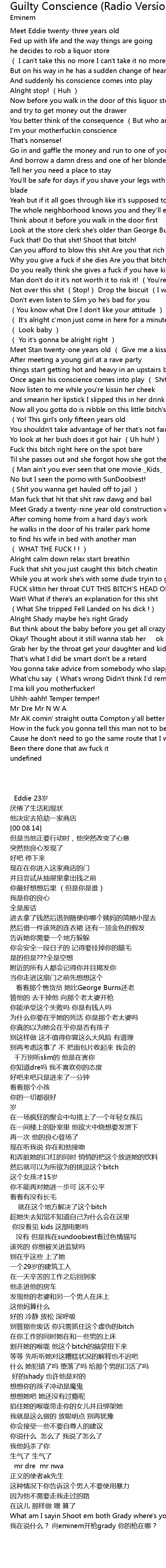 | [03:12.17] | What am I sayin Shoot em both Grady where's your gun at 我在说什么? 向eminem开枪grady 你的枪在哪? |
