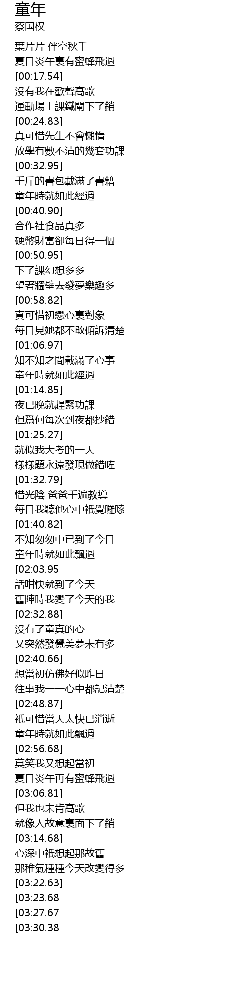 [03:35.68][03:27.67] 童年時就如此飄過