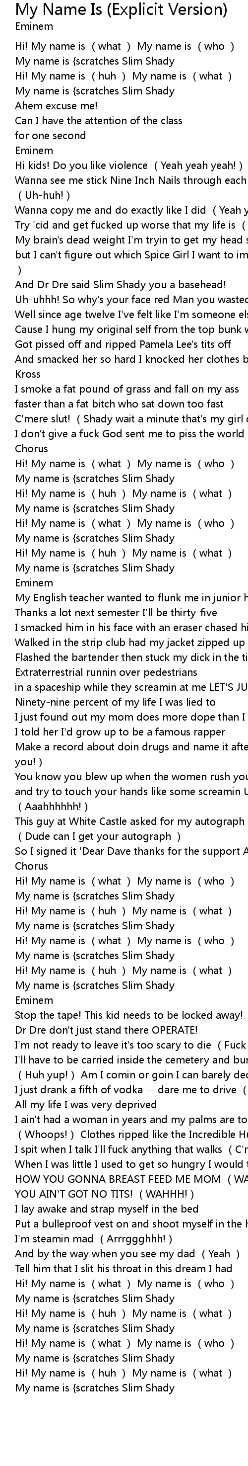 | [03:34.13] | Hi! My name is (what ) My name is (who ) |