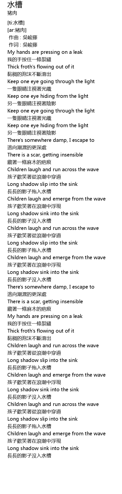 | [02:10.00] | 長長的影子拖入水槽 |