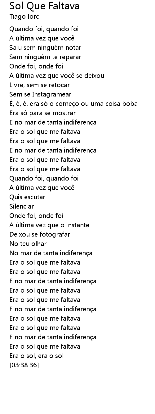 | [03:14.39] | Era o sol que me faltava |