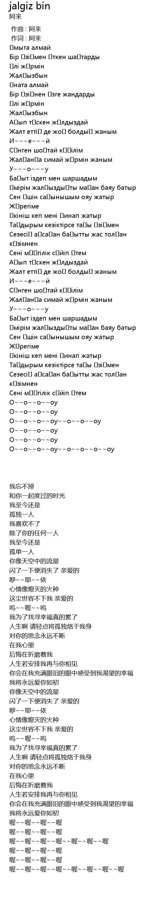 | [00:00.00] | 作曲 : 阿来 |