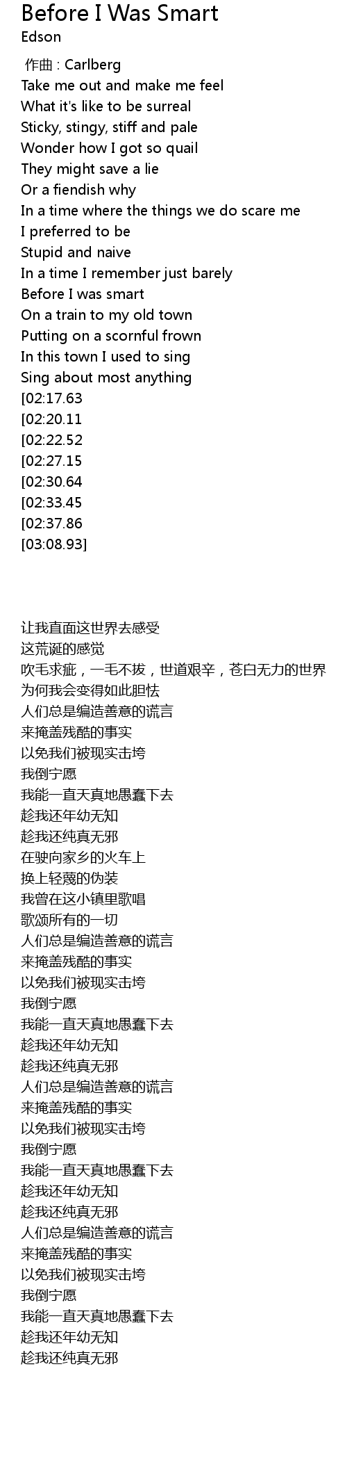 | [03:02.54][02:37.86][01:50.05] | Before I was smart |