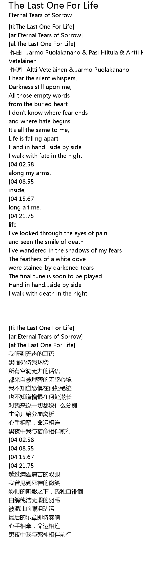 | [ti:The Last One For Life] | |