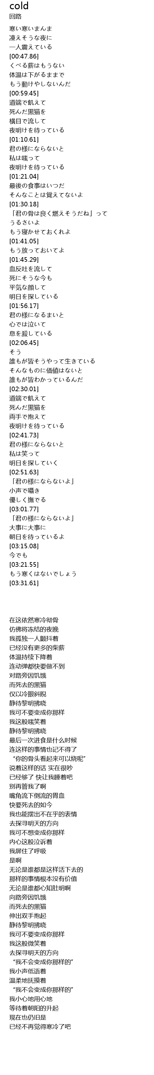 | [03:22.33] | 已经不再觉得寒冷了吧 |