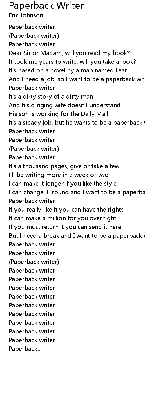 And I need a job, so I want to be a paperback writer |