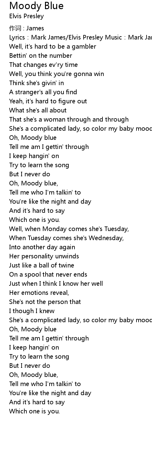 | Lyrics:Mark James/Elvis Presley Music:Mark James/Elvis Presley | |