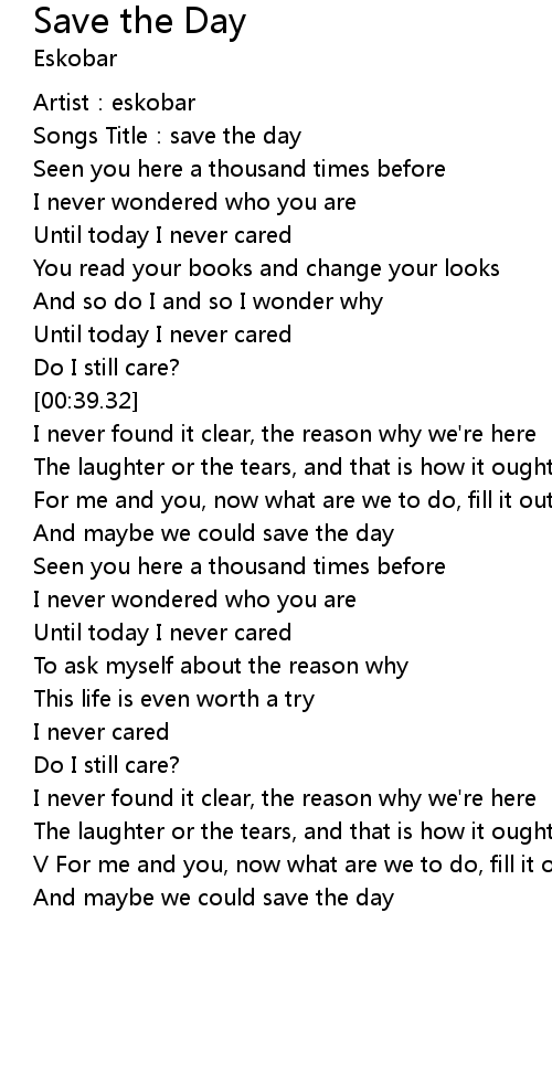 | [00:02.20] | Songs Title:save the day |