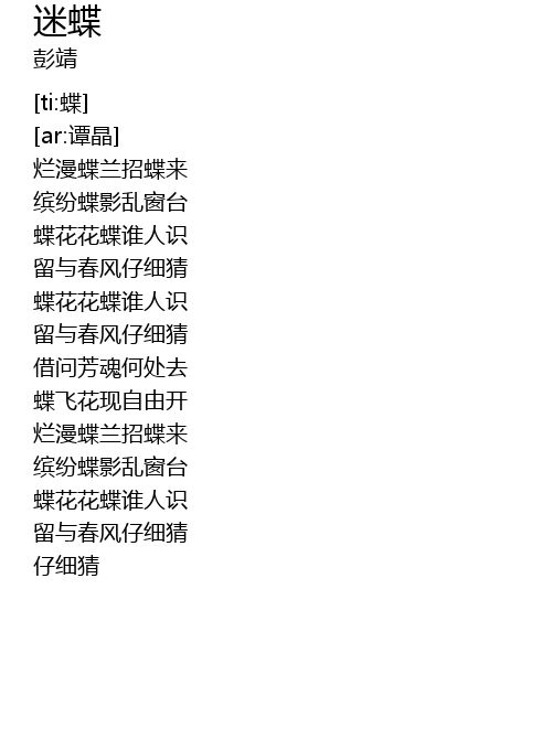 | [01:41.998] | 蝶花花蝶谁人识 |