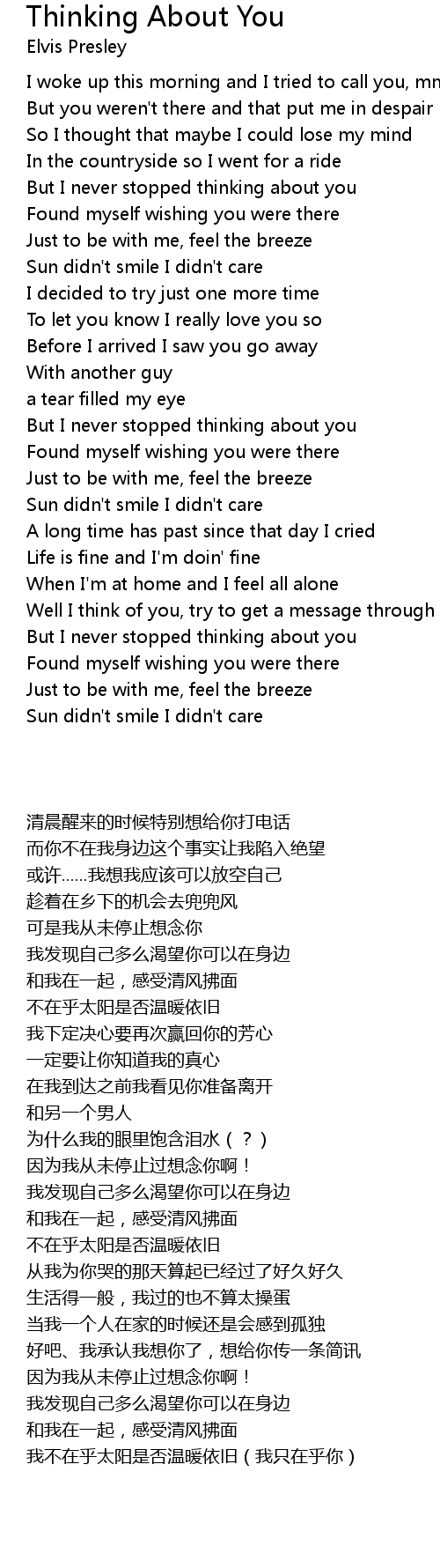 Well I think of you, try to get a message through |