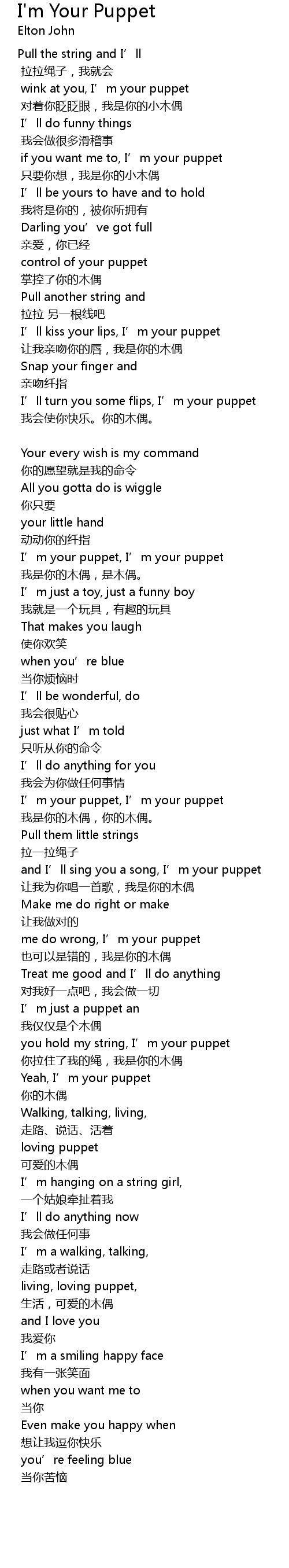| nǐ lā zhù le wǒ de shéng, wǒ shì nǐ de mù ǒu | |