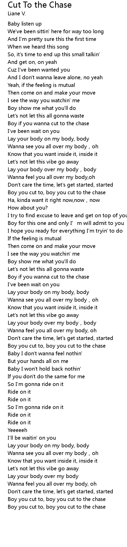 | [02:57.91] | Boy you cut to, boy you cut to the chase |
