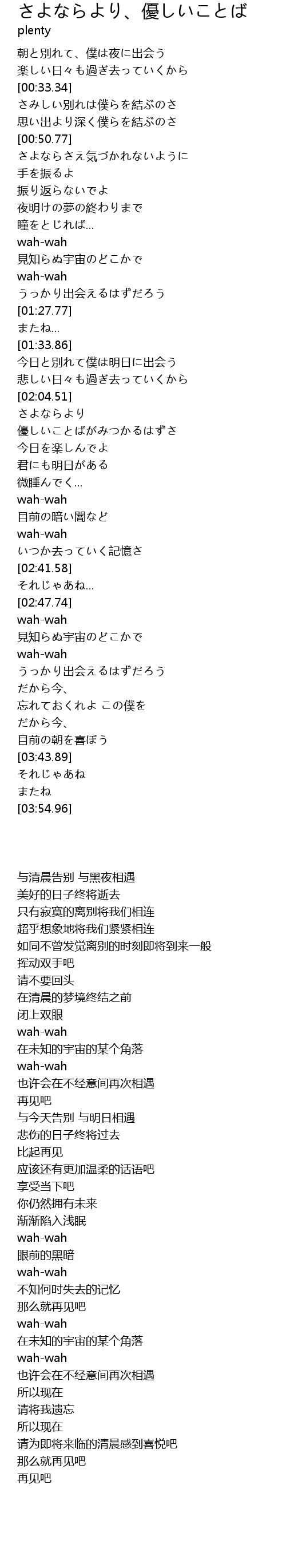 | [00:34.71] | さみしい別れは僕らを結ぶのさ |