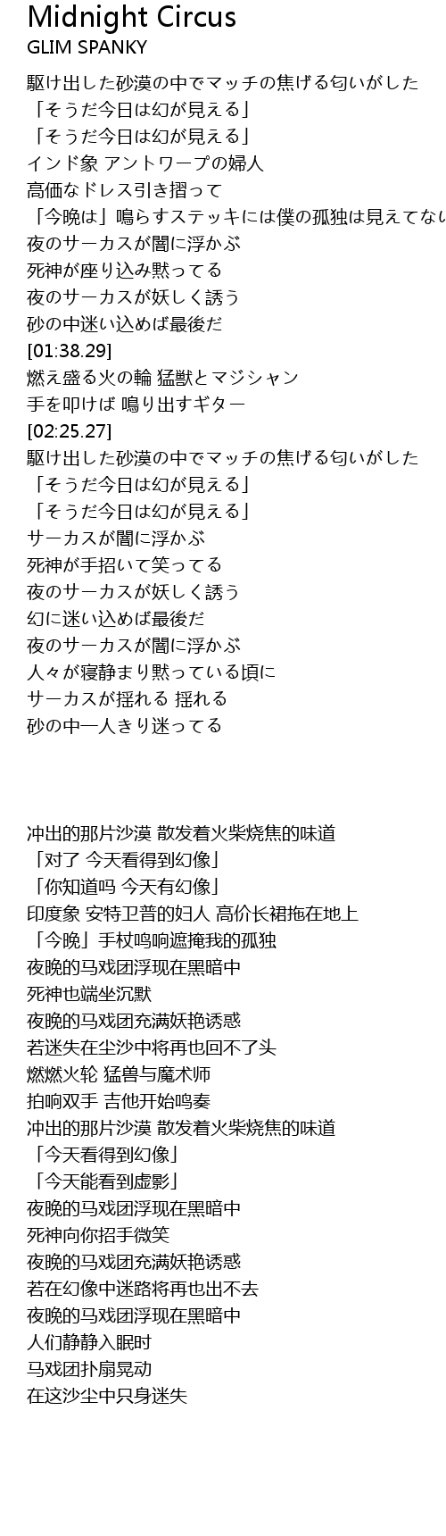 | [01:23.08] | 夜のサーカスが妖しく誘う |