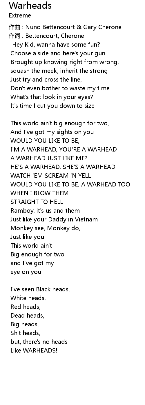 | I' M A WARHEAD, YOU' RE A WARHEAD | |