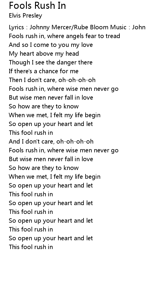 | This fool rush in | |