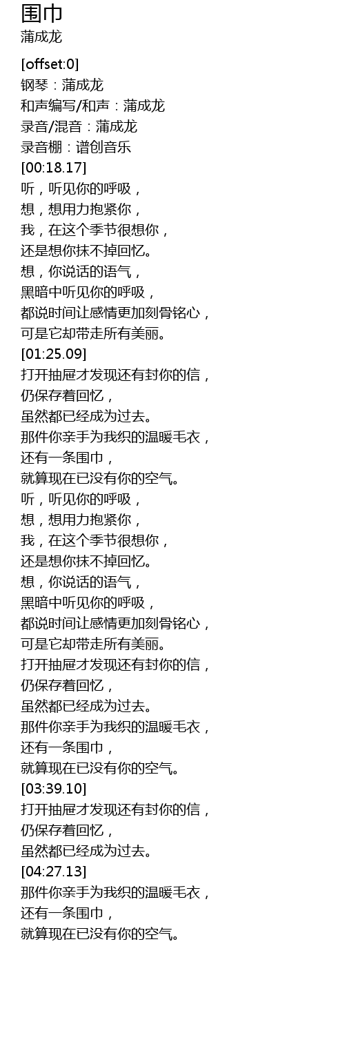 | [00:12.55] | 录音/混音:蒲成龙 |