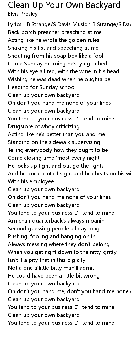 | 歌曲 | Clean Up Your Own Backyard |