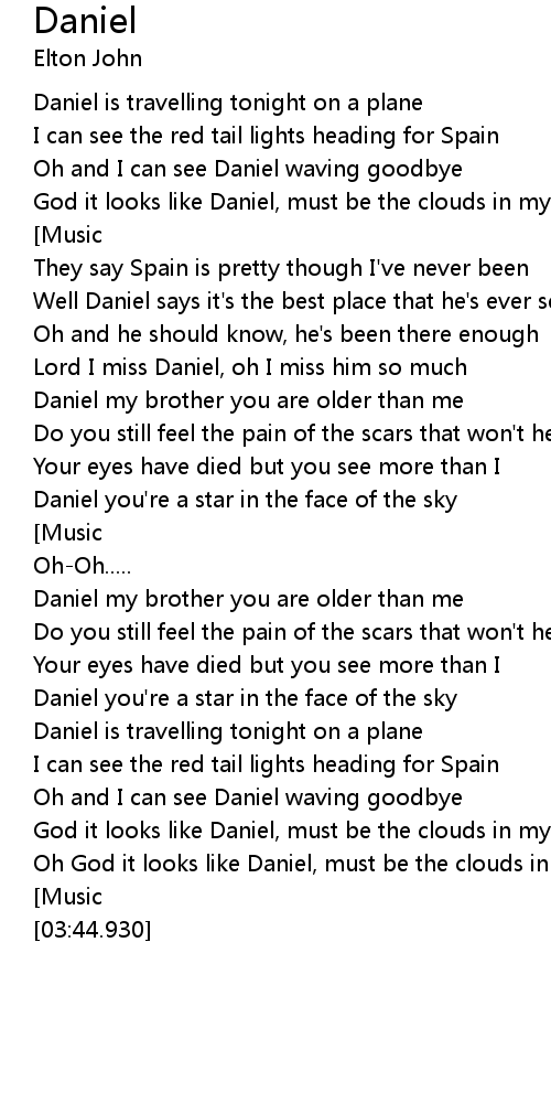| [01:44.630] | Daniel you' re a star in the face of the sky |