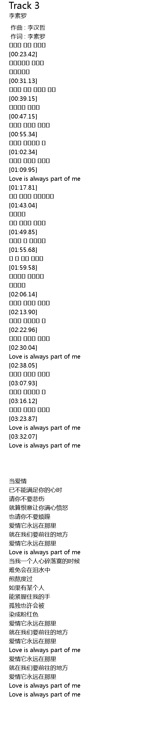 | [03:17.67] | 사랑은 언제나 그곳에 |