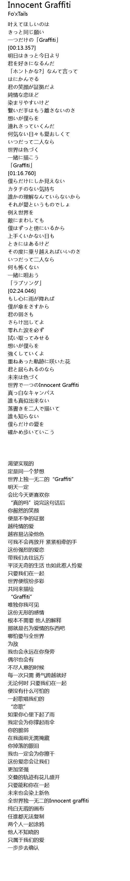 | [03:26.622] | 全世界独一无二的Innocent graffiti |