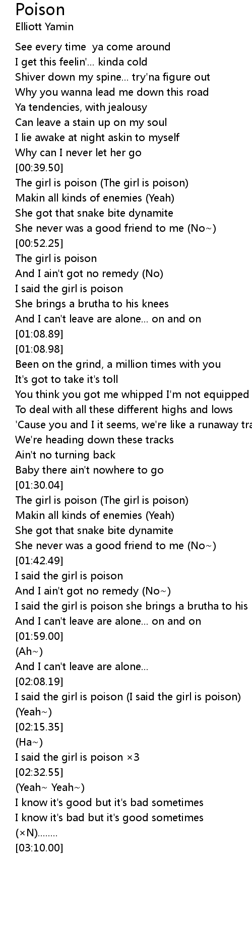 | [02:09.84] | I said the girl is poison (I said the girl is poison) |