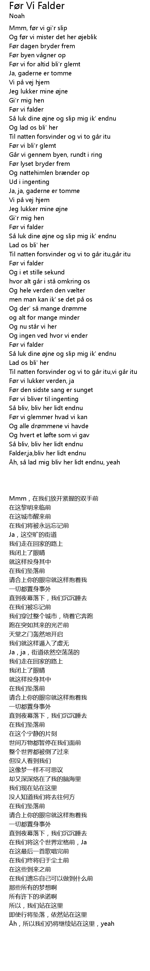 | 歌曲 | Før Vi Falder |