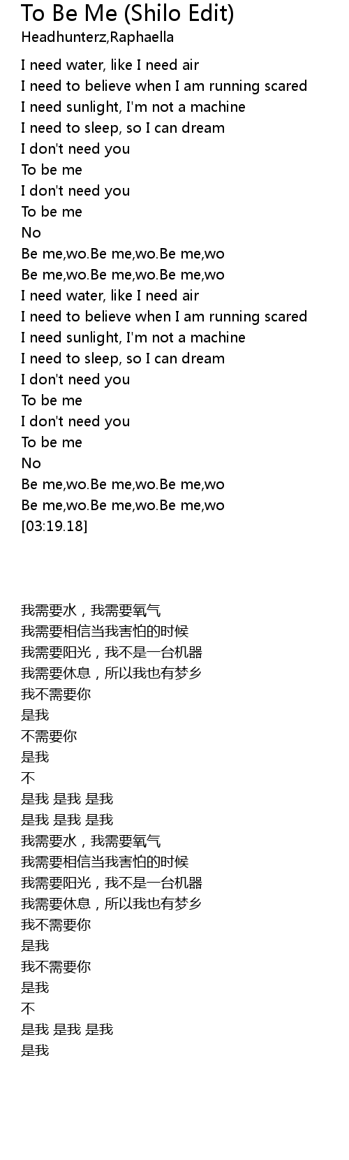 Be me,wo.Be me,wo.Be me,wo |