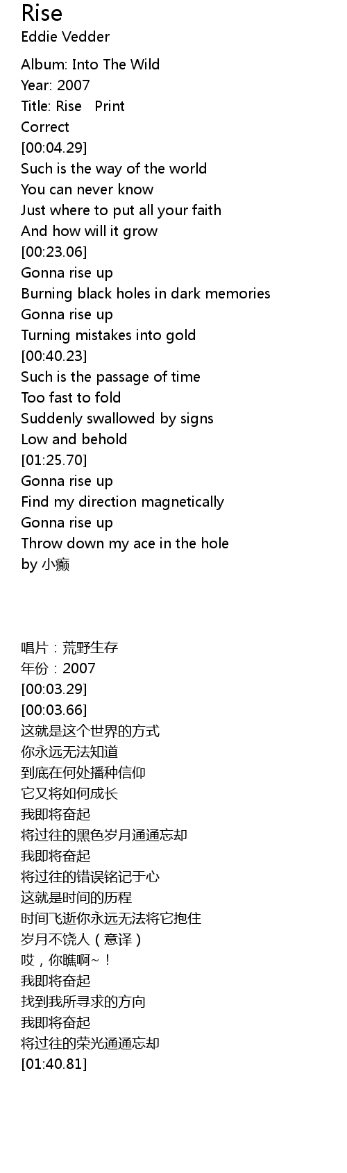 | 专辑 | Into the Wild (Music for the Motion Picture) |