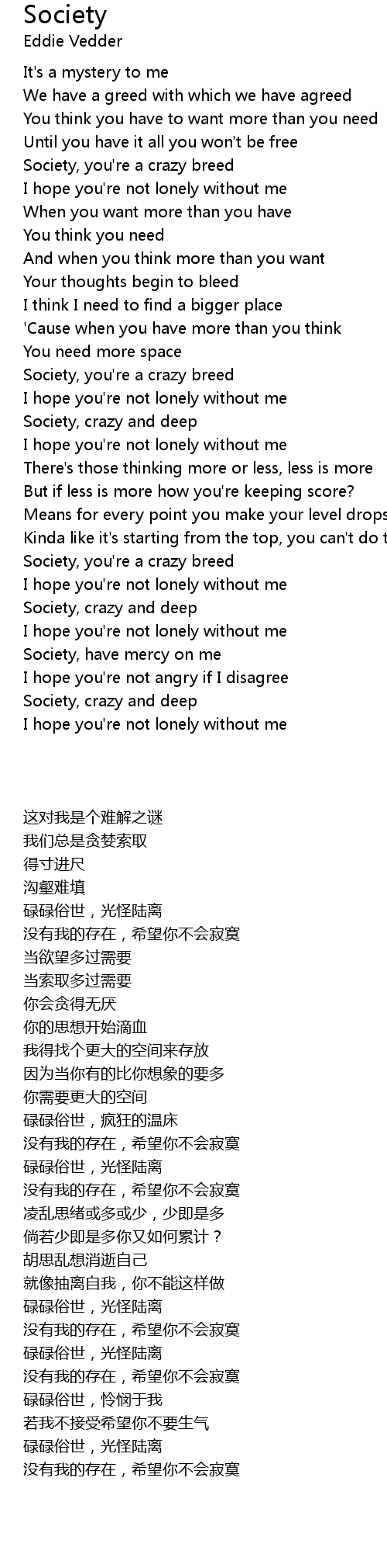 Society, have mercy on me |