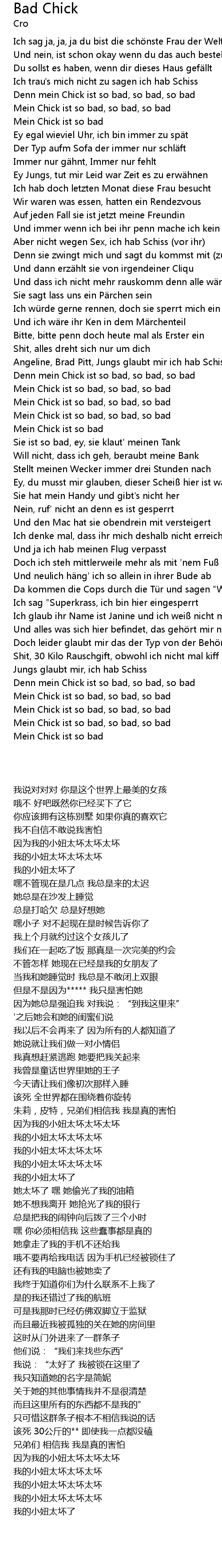 | [00:18.490] | Denn mein Chick ist so bad, so bad, so bad |