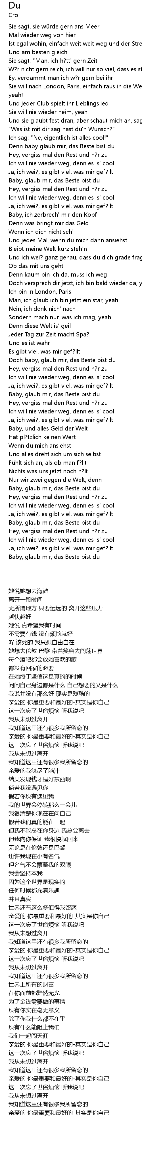 | [01:23.38] | Baby, glaub mir, das Beste bist du |