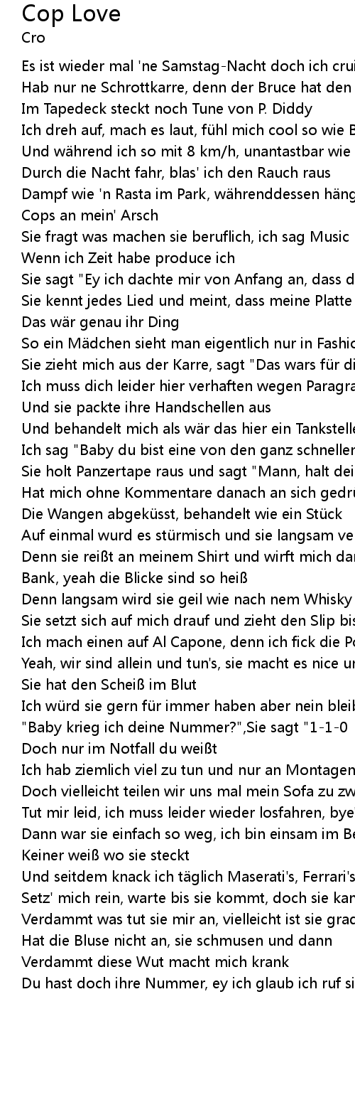 | [01:06.61] | Ich muss dich leider hier verhaften wegen Paragraph 6" |