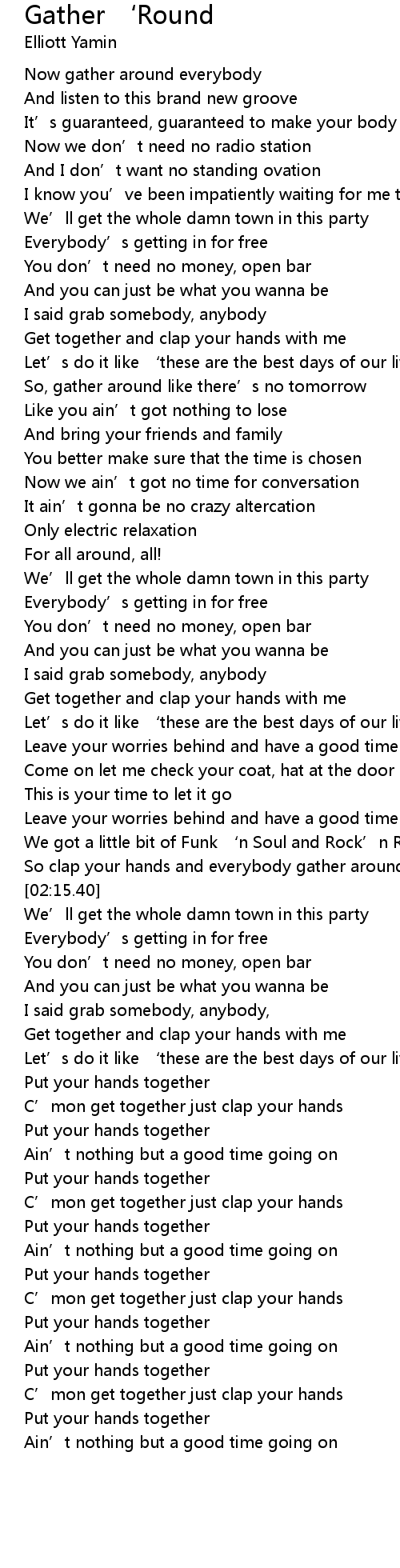| [03:05.04] | C' mon get together just clap your hands |