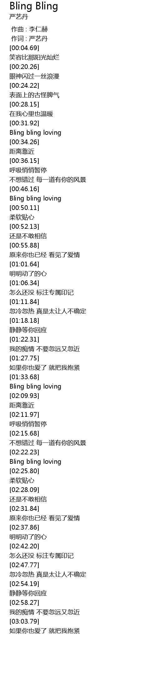 | [02:24.97] | Bling bling loving |