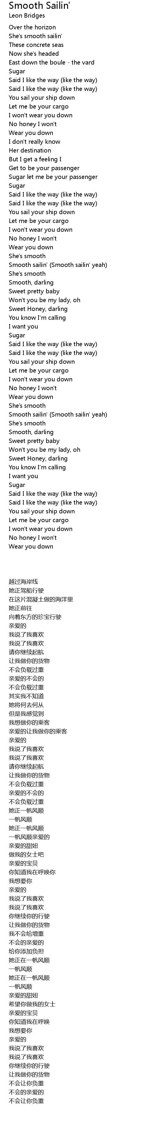 Smooth sailin' (Smooth sailin' yeah) |