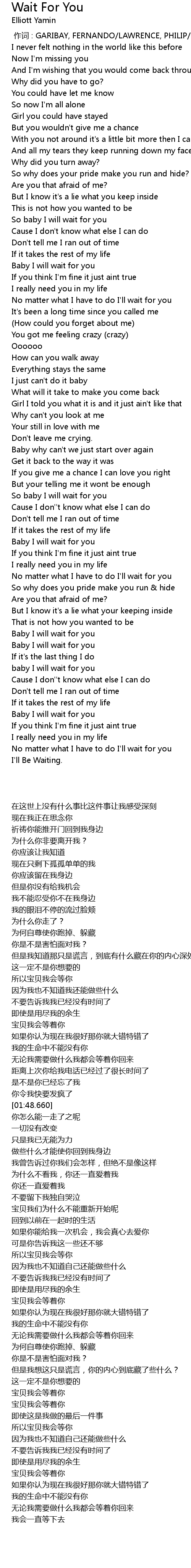 | [01:35.359] | No matter what I have to do I' ll wait for you |