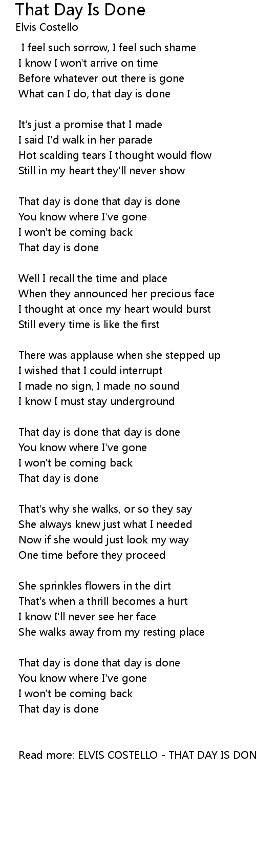 Read more: ELVIS COSTELLO - THAT DAY IS DONE LYRICS |