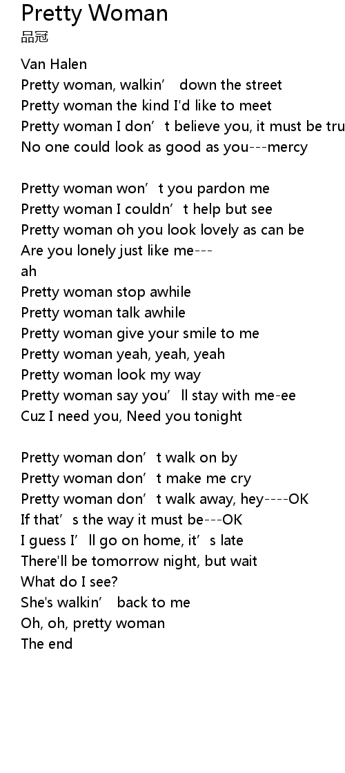 | Pretty woman don’t walk on by | |