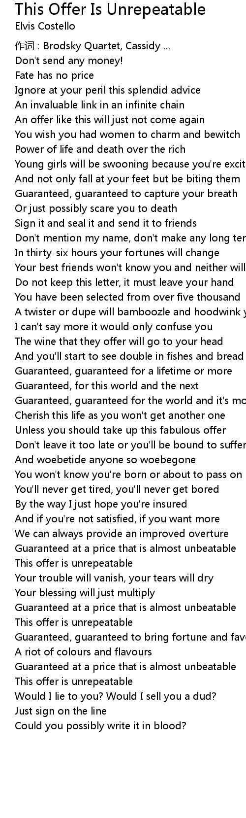 | 歌曲 | This Offer Is Unrepeatable |
