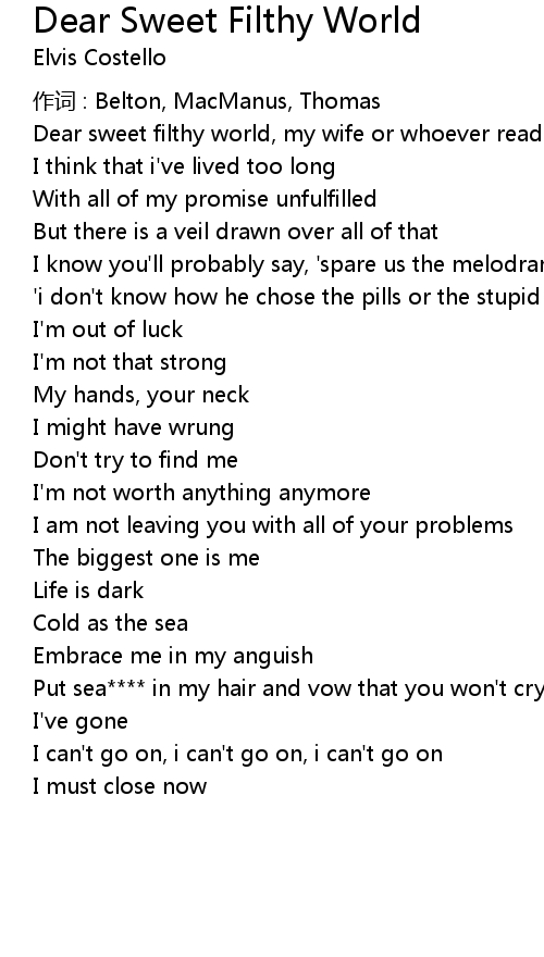 | Dear sweet filthy world, my wife or whoever reads this | |