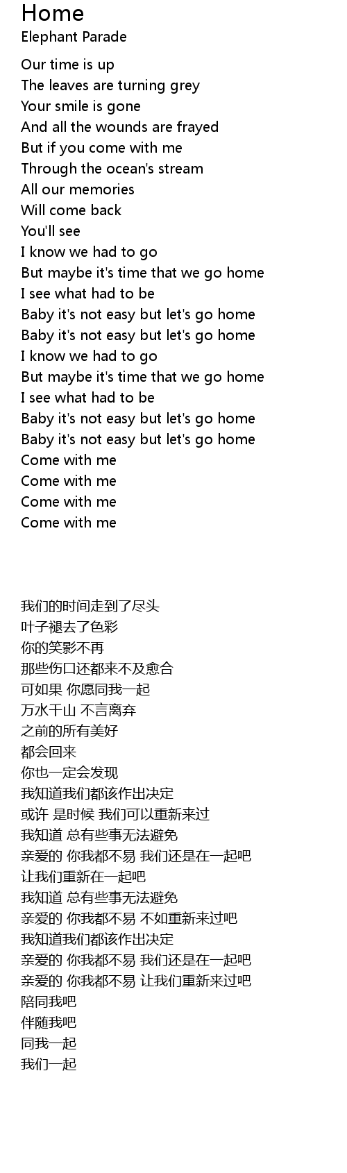 Baby it's not easy but let's go home |