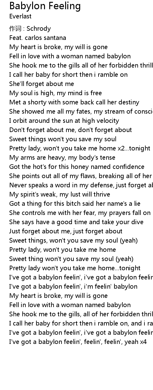 | I' ve got a babylon feelin', feelin', feelin', yeah x4 |