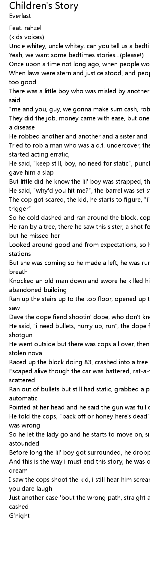 Uncle whitey, uncle whitey, can you tell us a bedtime story? |