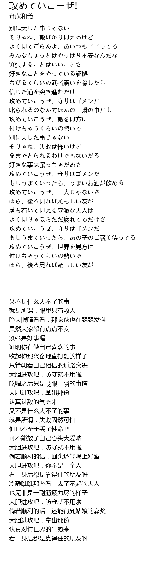 | [02:10.00] | 攻めていこうぜ、守りはゴメンだ |