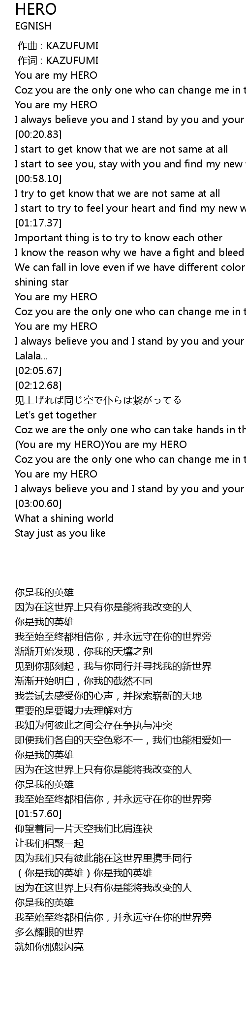| [02:38.45] | You are my HERO You are my HERO |