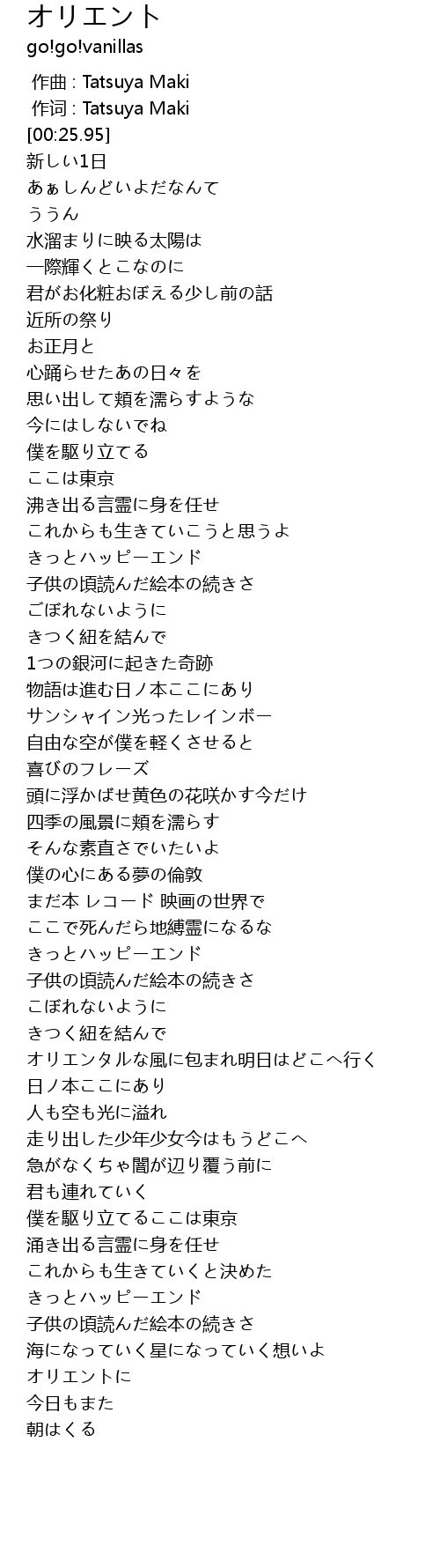 | [02:47.74] | オリエンタルな風に包まれ明日はどこへ行く |