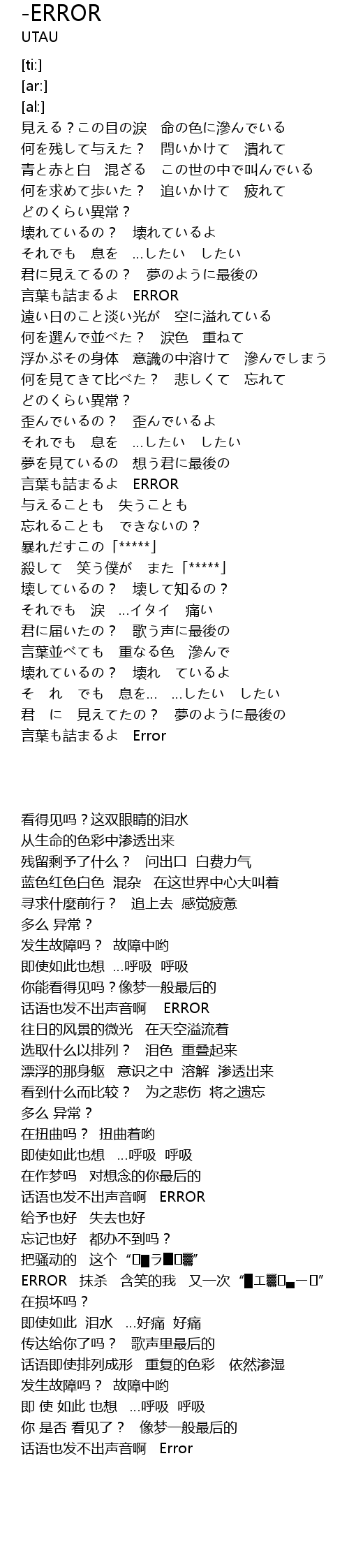 | [02:42.59] | ERROR 抹杀 含笑的我 又一次“▇エ▓▩▃ー▦” |