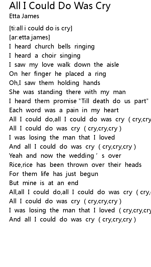 | [02:19.212] | All, all I could do, all I could do was cry cry, cry, cry |
