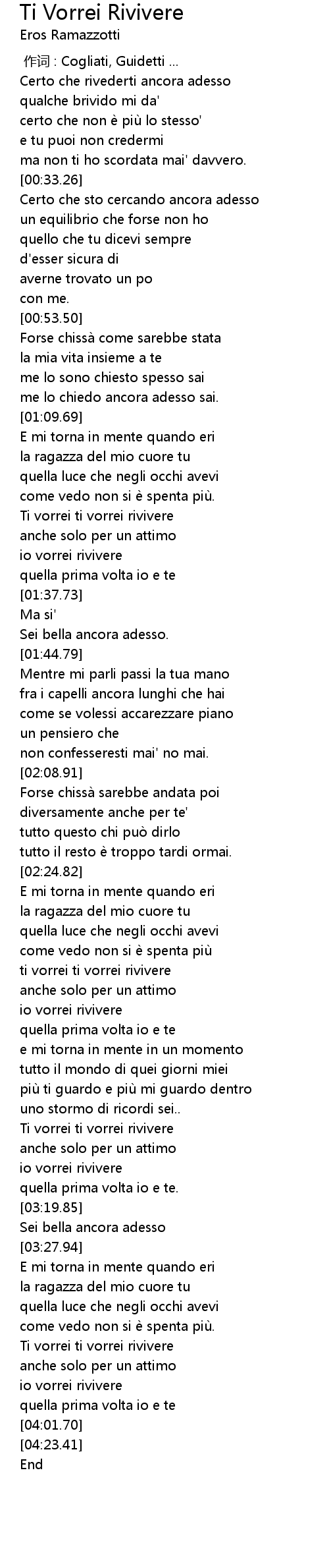 | [02:37.96] | ti vorrei ti vorrei rivivere |